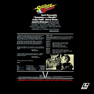 The CLV edition of Smokey and the Bandit replaced the CAV version in July 1981. The transfer taken from the same master used for the "orange bumper" CAV version, complete with side ending fadeouts and blips of side opening music.