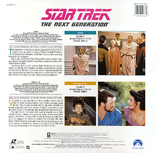 | Stardate 43917.4 The Enterprise is the site for a meeting between the Federation and a mysterious race called the Legaran. Representing the Federation is famed Vulcan ambassador Sarek (Mark Lenard), who arrives early to prepare for the Legaran. Sarek's aids warn Picard (Patrick Stewart) that Sarek is fatigued. Later, at a concert arranged in Sarek's honor, Picard is stunned to observe the Vulcan moved to tears. Troi (Marina Sirtis) and Dr. Crusher (Gates McFadden) surmise that Sarek is suffering from Bendii Syndrome, a degenerative disease characterized by the loss of emotional control. Picard decides that the only way to protect the Federations' interests is to mind-meld with Sarek. But can Picard withstand the violent intensity of Sarek's emotions? | |
