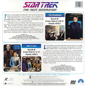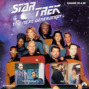 | Stardate 44805.3 Love blossoms on board the Enterprise when Counselor Troi's mother, Lwaxana (Majel Barrett), romances a visiting scientist, Dr. Timicin (David Ogden Stiers), who is struggling to save his home planet. Hoping to revitalize his planet's dying sun, Timicin takes the Enterprise to a remote region to test his helium ignition theories on a giant star. But when the experiment fails, he must return home for his Resolution - the suicide ritual required at age 60 under Kaelon law. At Lwaxana's urging, Timicin becomes convinced he can still save Kaelon from destruction - all he needs is more time. Defying his leaders, he requests asylum on board the Enterprise. When Captain Picard (Patrick Stewart) agrees, the Kaelon government protests and threatens to go to war! | |