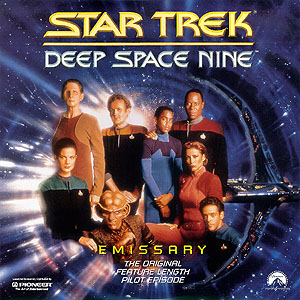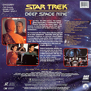 | Stardate 46379.1 Deep Space Nine, a ramshackle space station or bitting the planet Bajor. For Commander Ben Sisko (Avery Brooks), this will be no easy assignment. He and his crew must help the Bajorans rebuild their world from the wasteland left by their enemies, the Cardassians. His crew includes a Bajoran ex-terrorist (Nana Visitor), a curmudgeonly shape-shifter (René Auberjonois), a Ferengi thief (Armin Shirmerman), and a dual entity (Terry Farrell) whose beautiful humanoid body is inhabited by a 300-year-old slug like lifeform. Sisko's leadership abilities are soon put to the test as he faces a war with the Cardassians and a fateful encounter with the one man he holds responsible for the death of his wife - Captain Jean-Luc Picard (Patrick Stewart)! | |