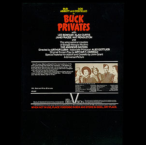 Buck Privates was reissued on LaserDisc in August 1986 on MCA Home Video (Catalog #: 22007).